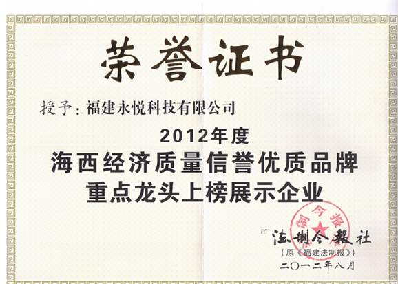 2012年度海西經濟質量信譽優質品牌重點龍頭上榜展示企業